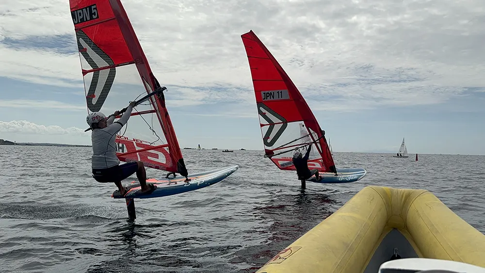 前回の合宿に引き続き現在日本に滞在中のFabian Picコーチ(フランス)を招聘し、本合宿では2月の海外遠征に向けて「パンピング技術向上」をテーマに海上練習を実施しました。